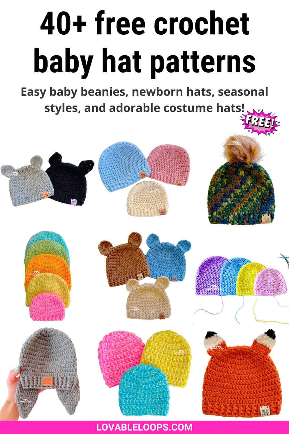 This collection includes easy crochet baby hat patterns, newborn hats, classic beanies that include baby sizes, seasonal designs, and fun costume hats for babies and kids.
