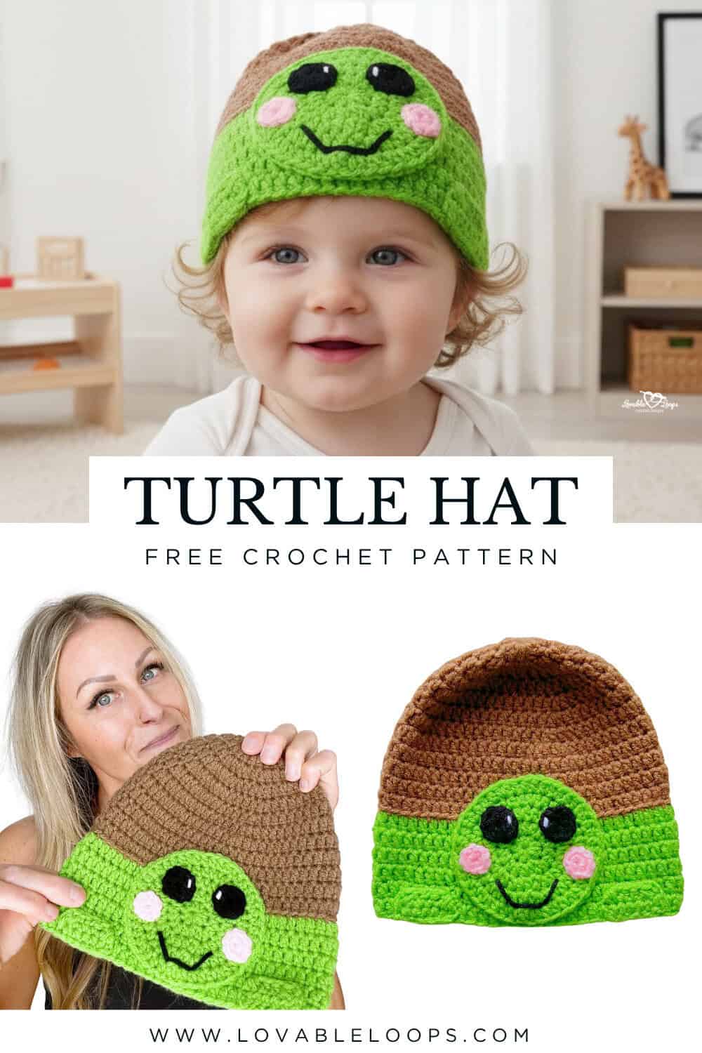 A cute turtle hat can be fun and easy to make, and this one checks both boxes.